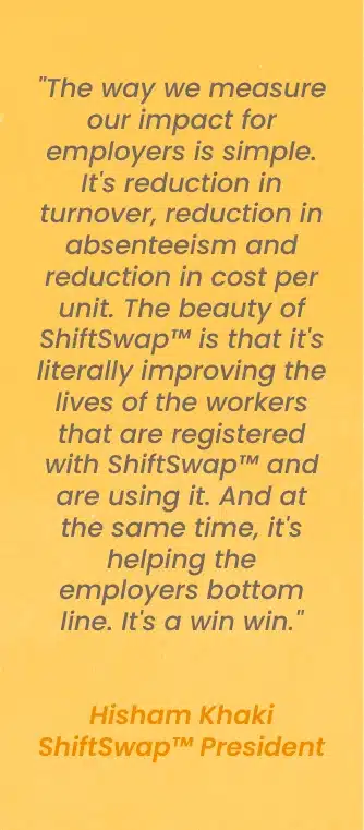 Want to see how ShiftSwap™ works in action? Watch the video below to learn how our platform helps operations leaders execute labor plans with ease, fairness, and efficiency. Then sign up for a demo with ShiftSwap President, Hisham Khaki.