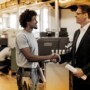 male coworker shaking hands with male supervisor